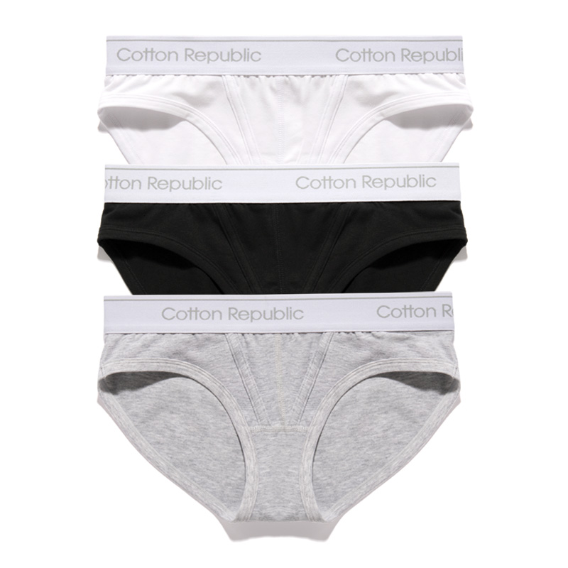 棉花共和国女黑白灰纯色基础低腰宽腰带三角内裤 Cotton Republic