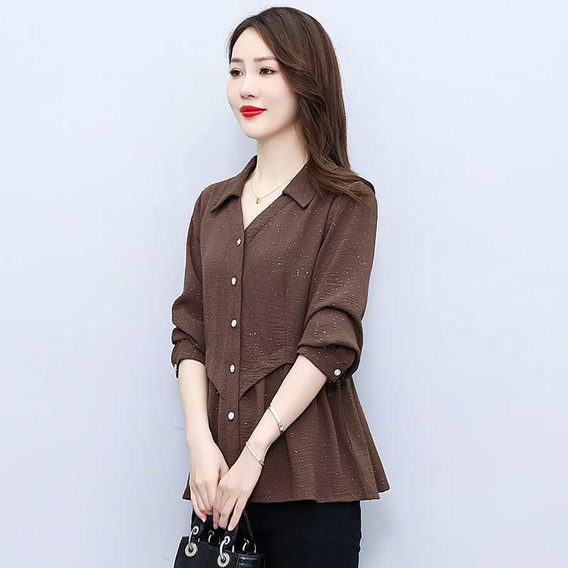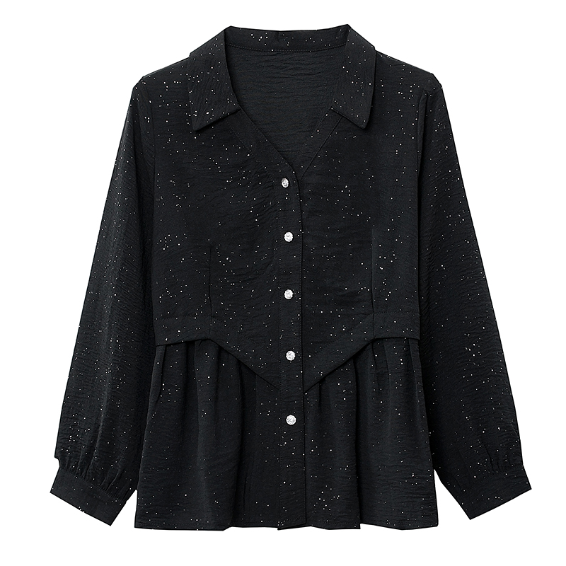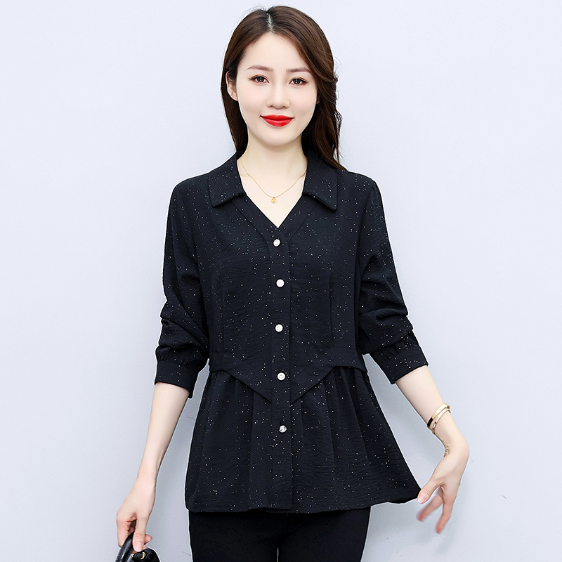 打底衫 胖mm巨显瘦上衣高级感气质长袖 女秋季 大码 衬衣女 新款 中长款