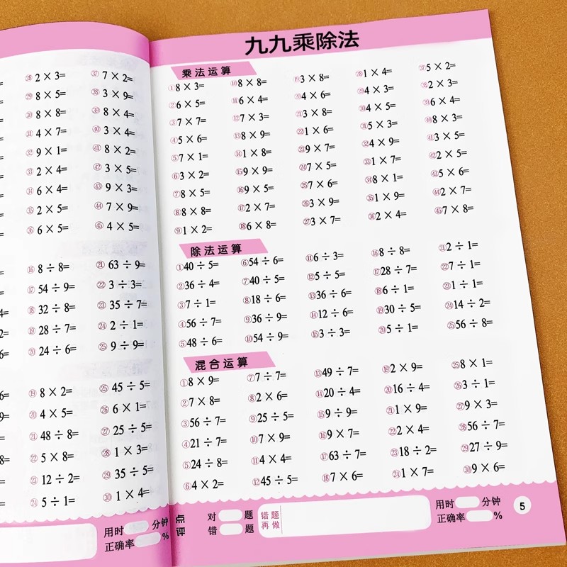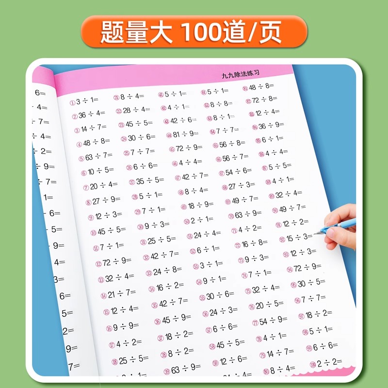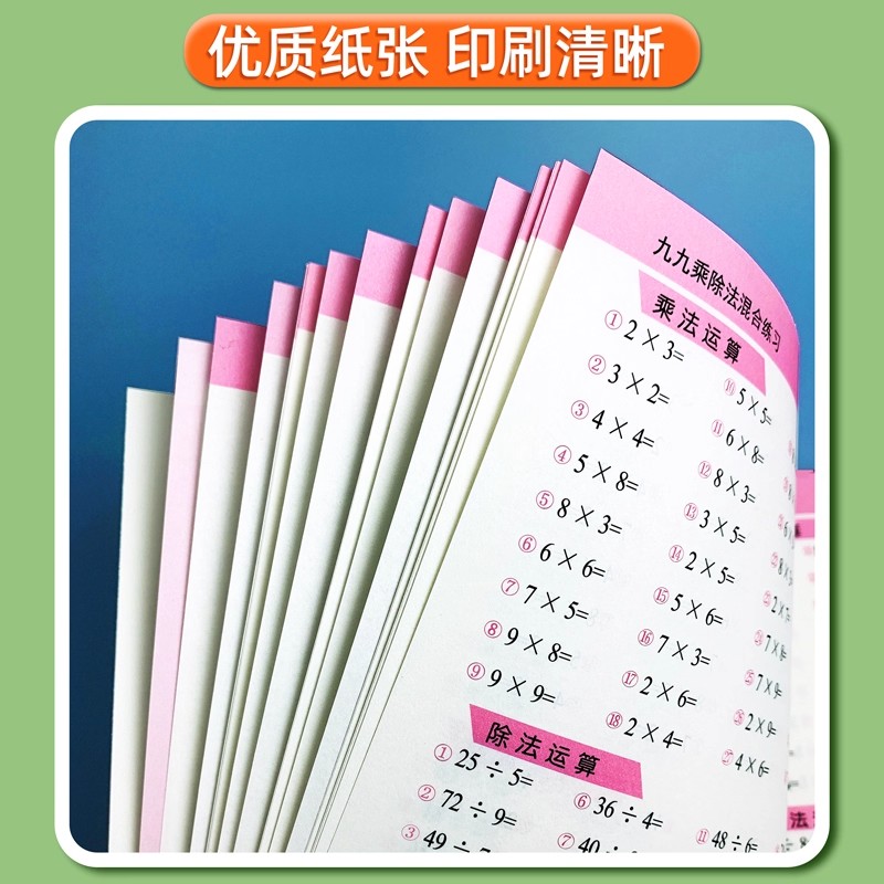 九九乘法口诀表99乘除法每天100题口算题卡作业本天天练一日一练小学数学一二三年级九九乘除法口诀口算计算题专项强化训练习册题