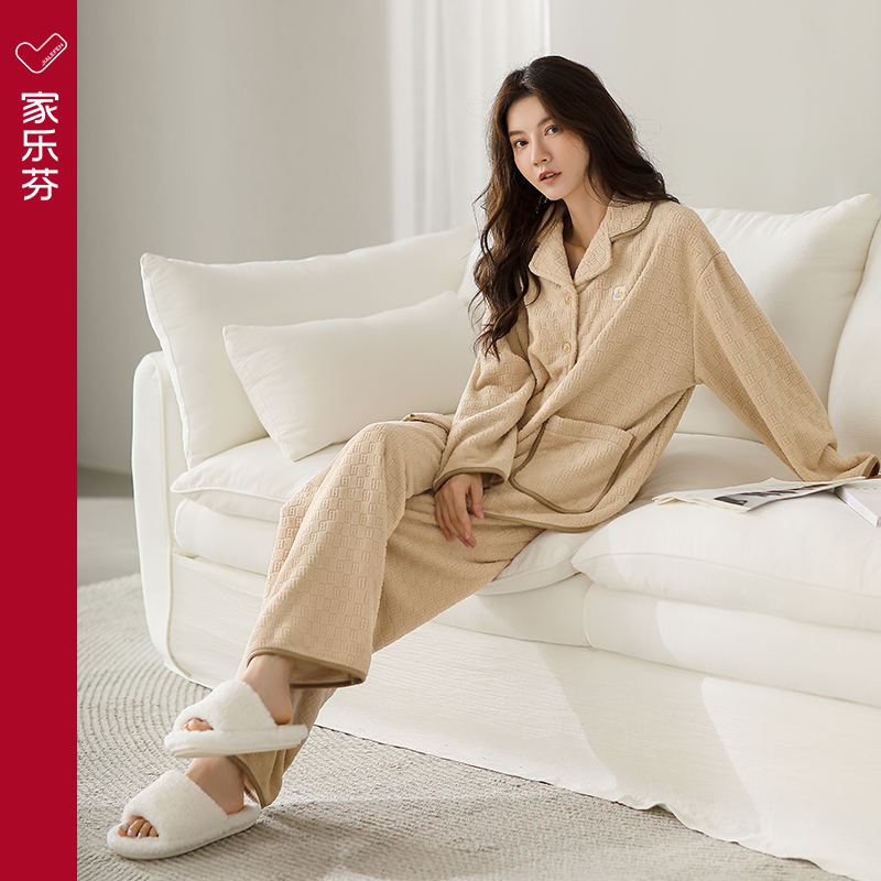 海岛绒可外穿家居服 简约薄款 睡衣女秋冬季 保暖珊瑚绒女士睡衣套装