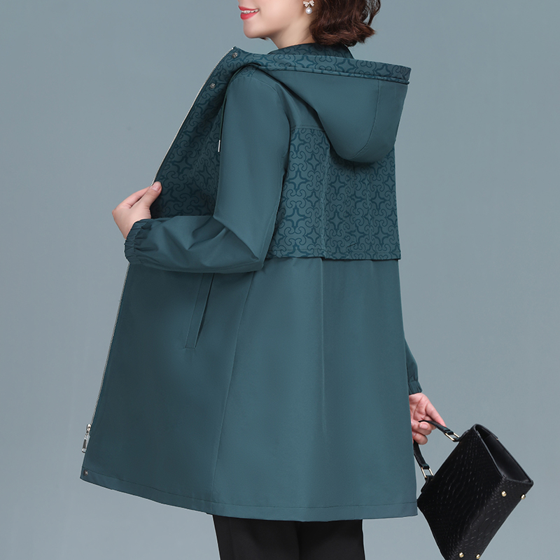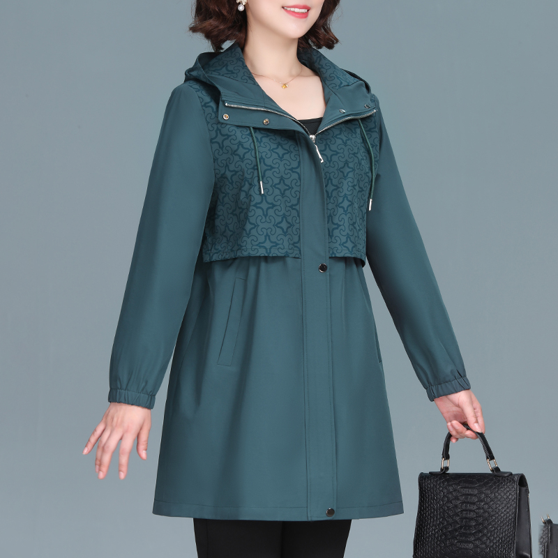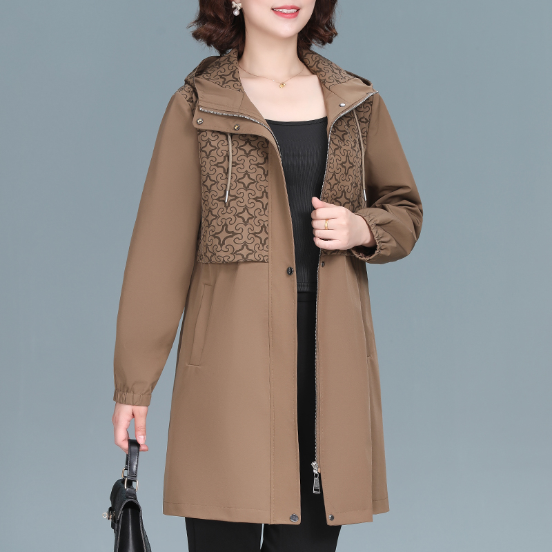 中老年人春秋洋气风衣女中长款 大码 外套40岁50高贵时尚 胖妈妈秋装