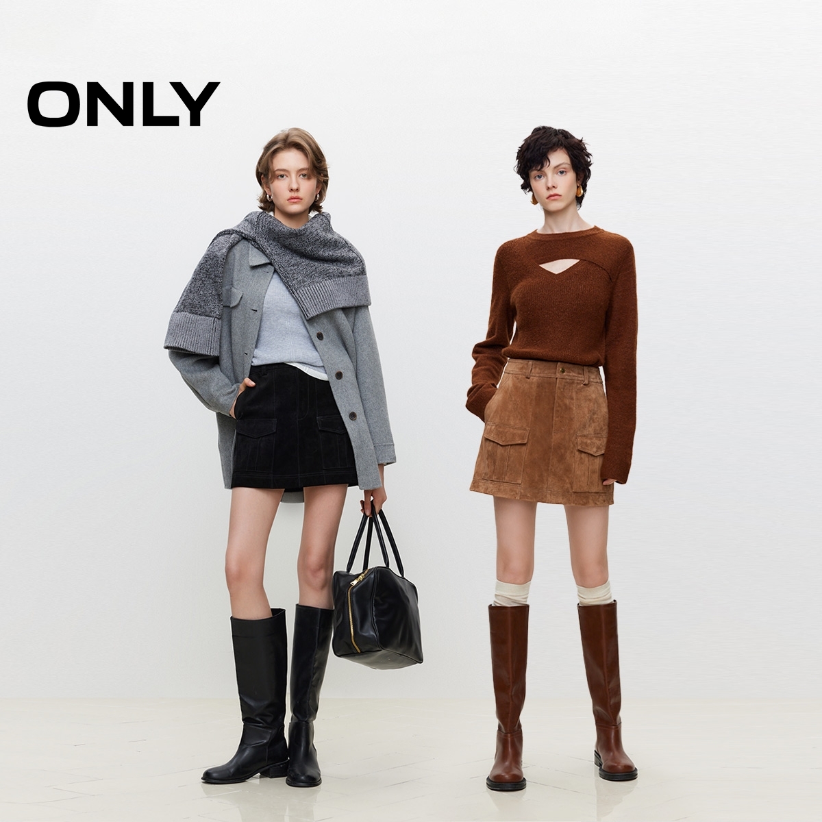 ONLY2025秋季 通勤风气质毛呢挺阔面料A字伞裙长裙半身裙女 新款