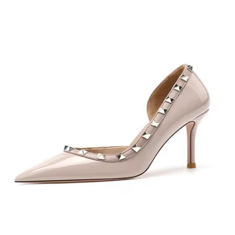单鞋 尖头细跟裸色柳丁不累脚气质法式 女 女2025秋冬新款 铆钉高跟鞋
