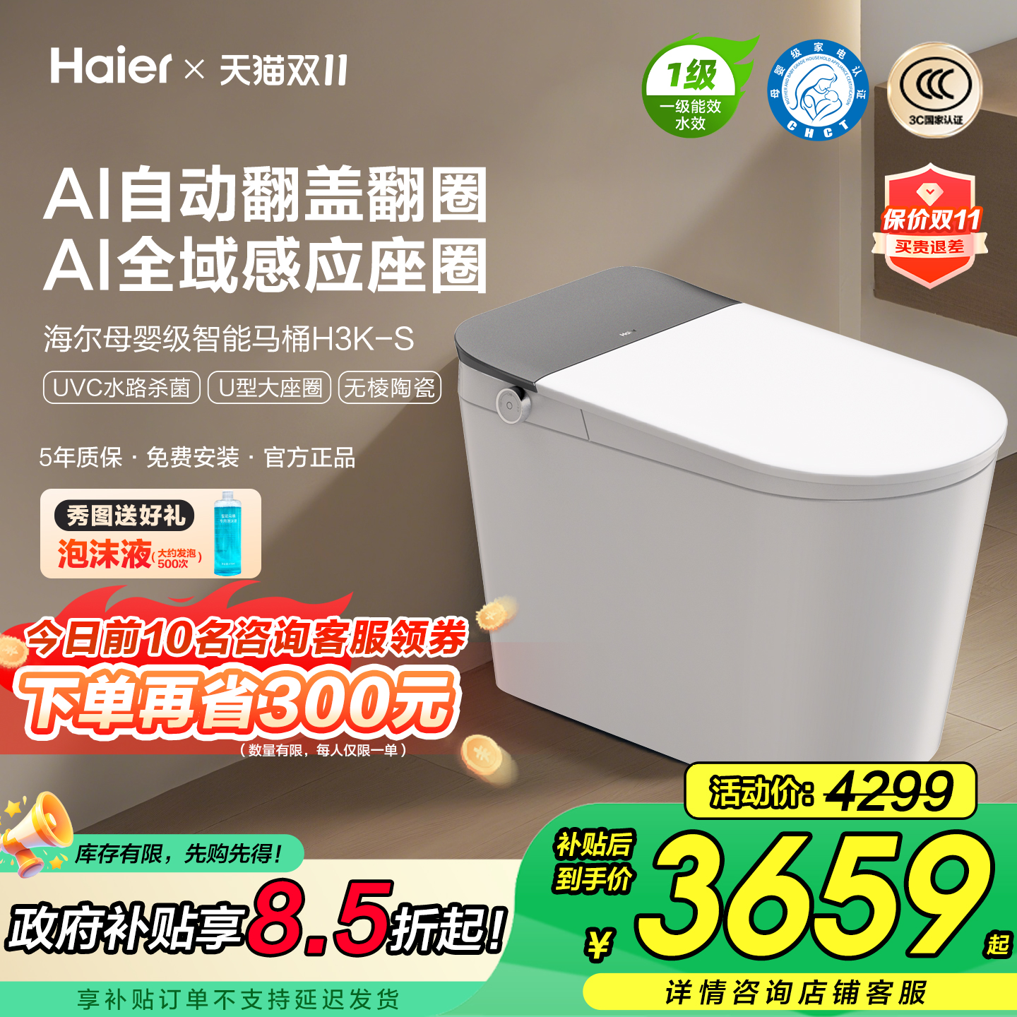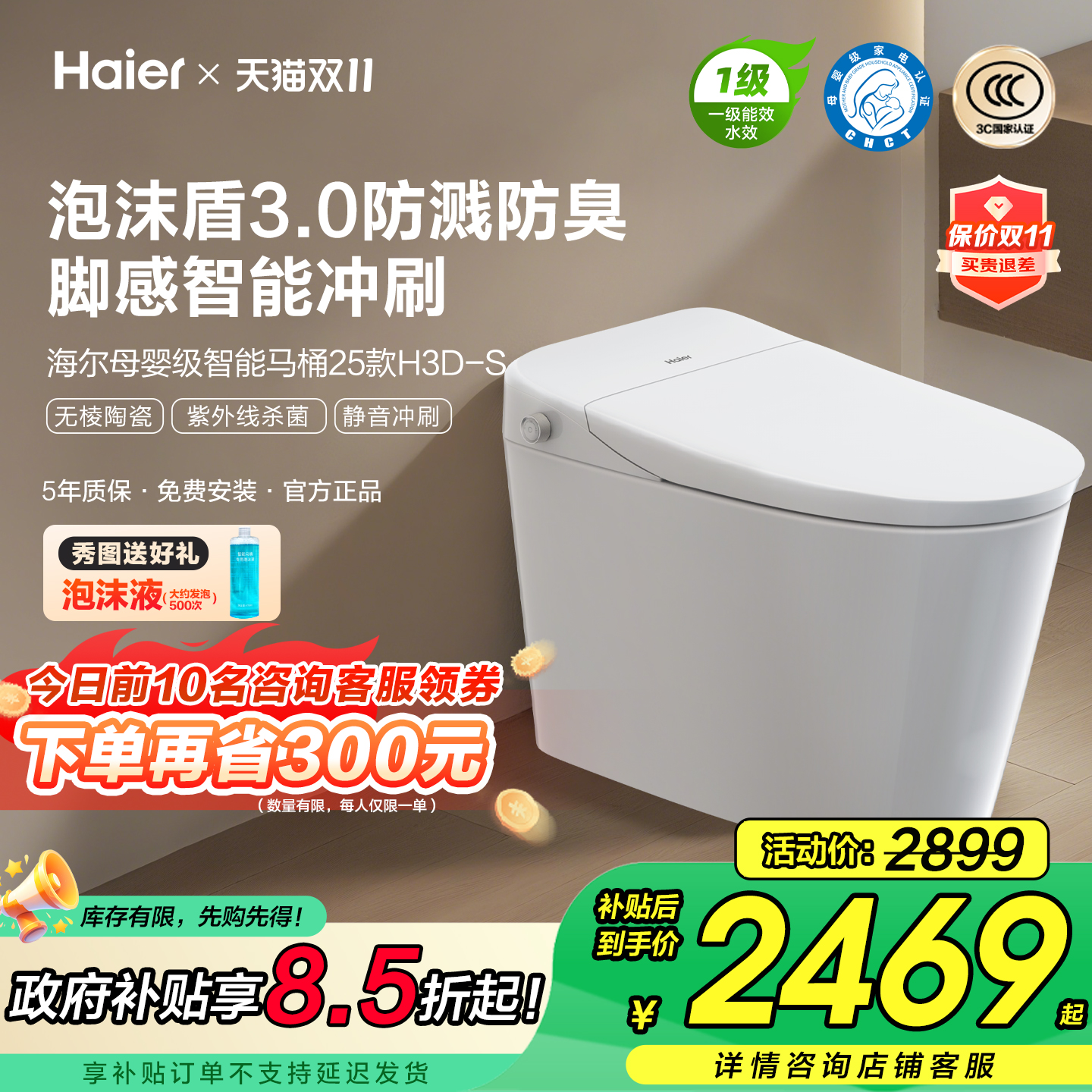 海尔智能马桶全自动泡沫盾感应翻盖圈杀菌坐便器H3ES 政府补贴