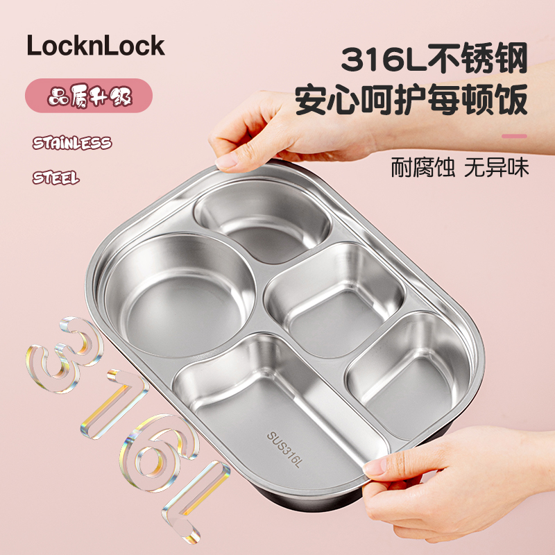 乐扣乐扣不锈钢饭盒小学生专用餐盘餐盒儿童分餐具格上学宝宝汤碗