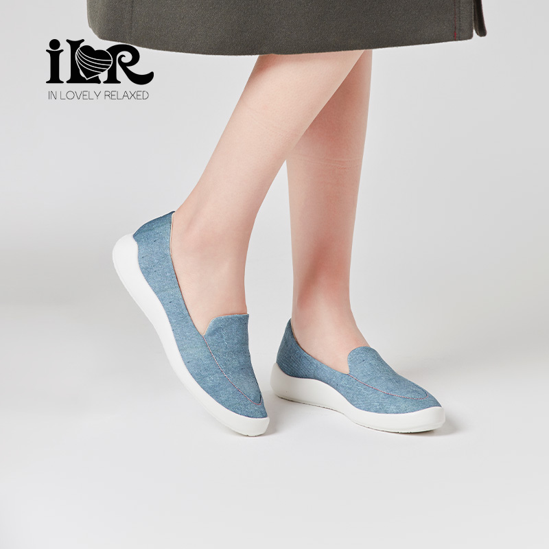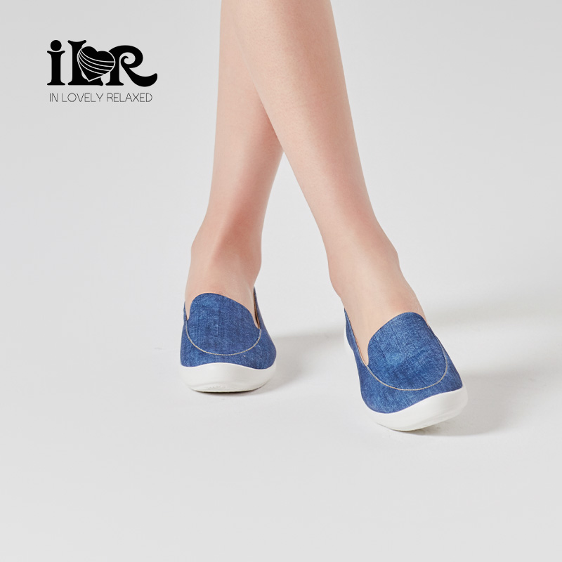 极简平底一脚蹬软底女鞋 ILR因爱乐诗牛仔蓝色乐福鞋 女复古豆豆鞋