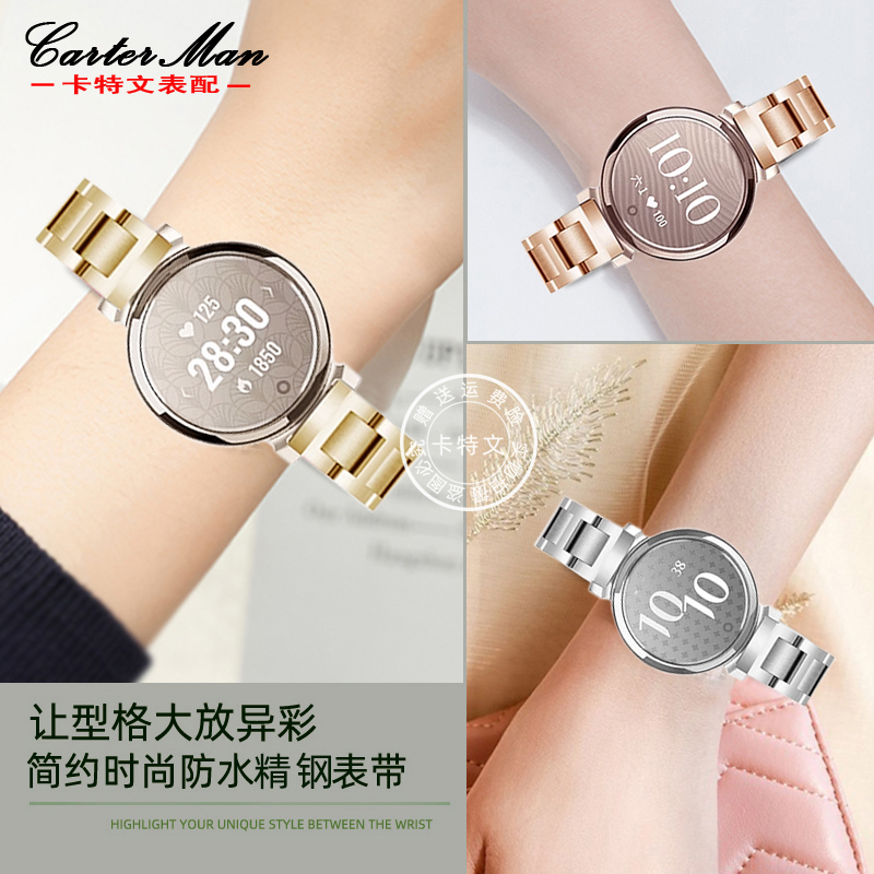 卡特文女士表带适配佳明Lily2手表碗带钢带 阿玛尼满天星表带14mm
