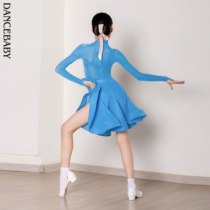 Dancebaby拉丁舞服2025新款 DAS772L 女童比赛规定赛服高领分体套装