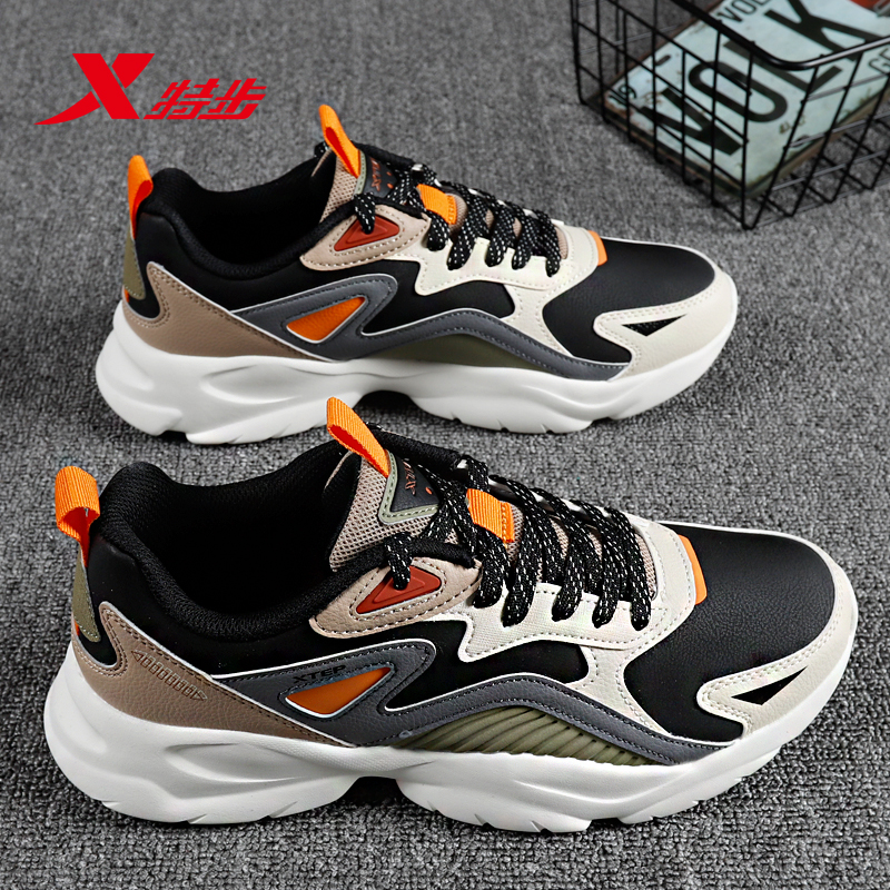 运动鞋 皮面防水老爹鞋 正品 特步男鞋 休闲鞋 新款 复古男士 子 2025秋季