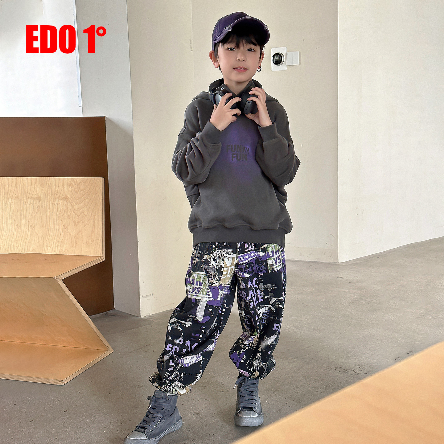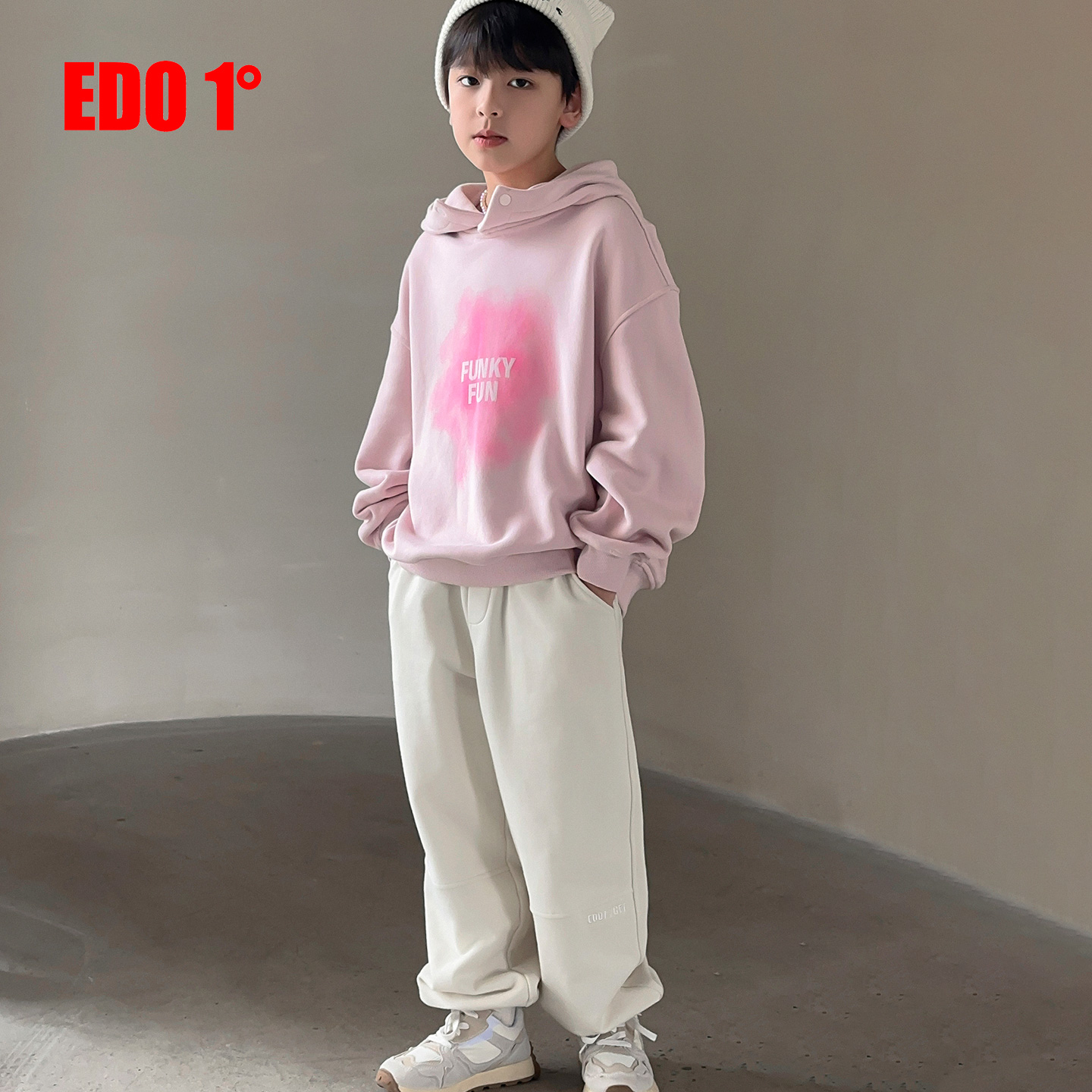 edo1一度童装 儿童宽松连帽卫衣男女童复古风运动上衣潮 25秋冬新款