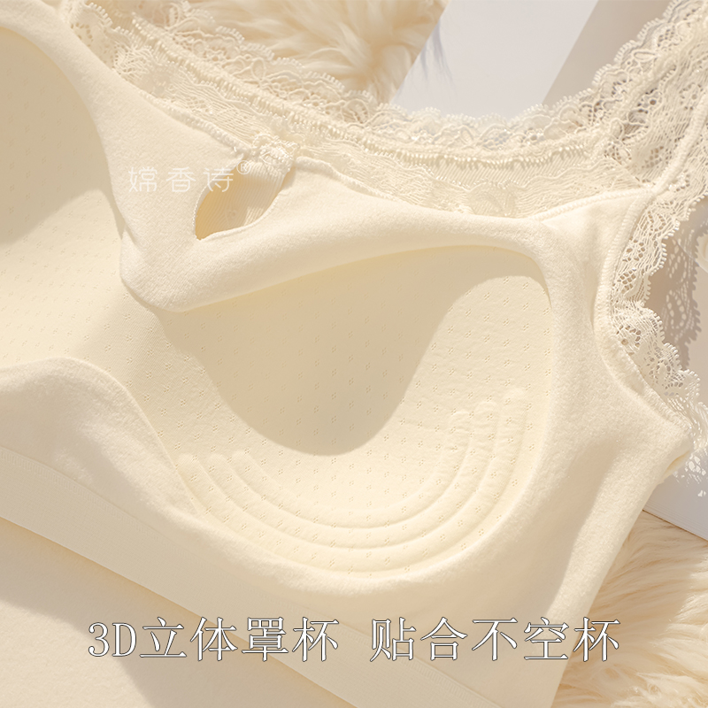 保暖背心女款 秋冬内搭蕾丝边一体免穿文胸 带胸垫吊带内衣2024新款