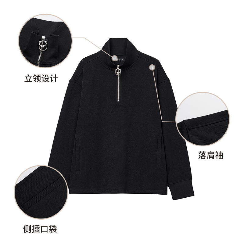 上衣 柒牌半开襟卫衣男青年无帽T恤秋冬立领华夫格长袖 抗静电