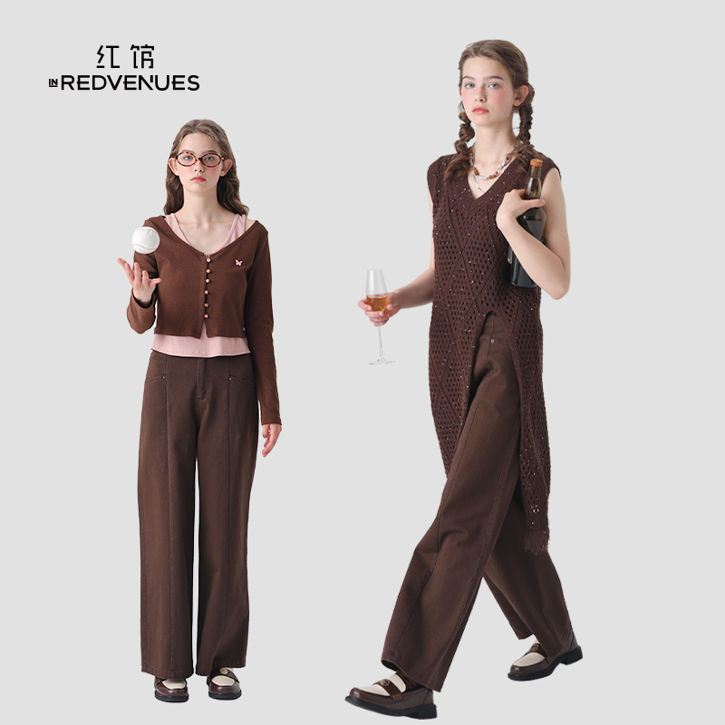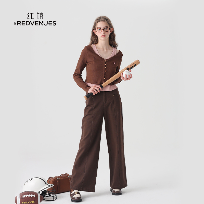 宽松显瘦垂感拖地裤 新款 女2025秋季 王家有鱼米杏色阔腿弯刀牛仔裤