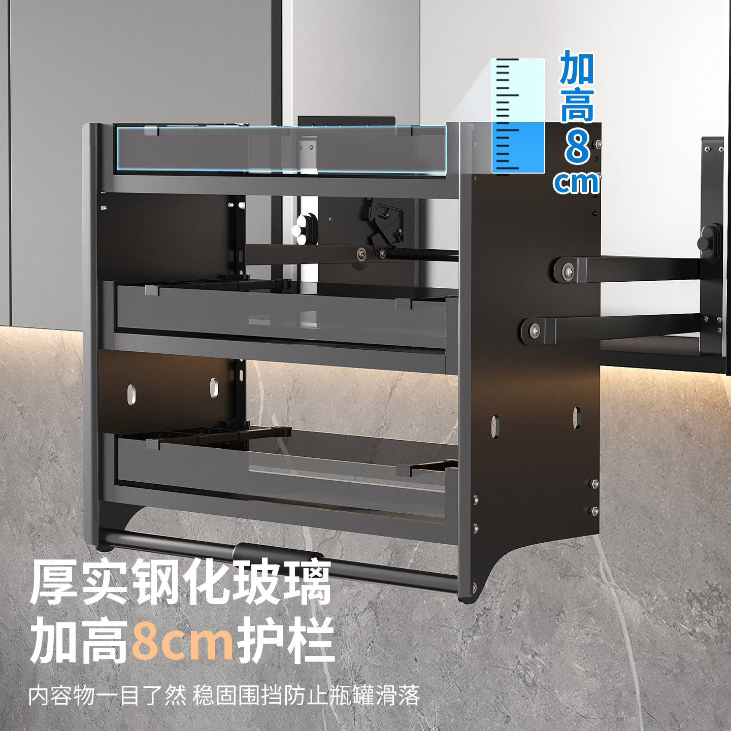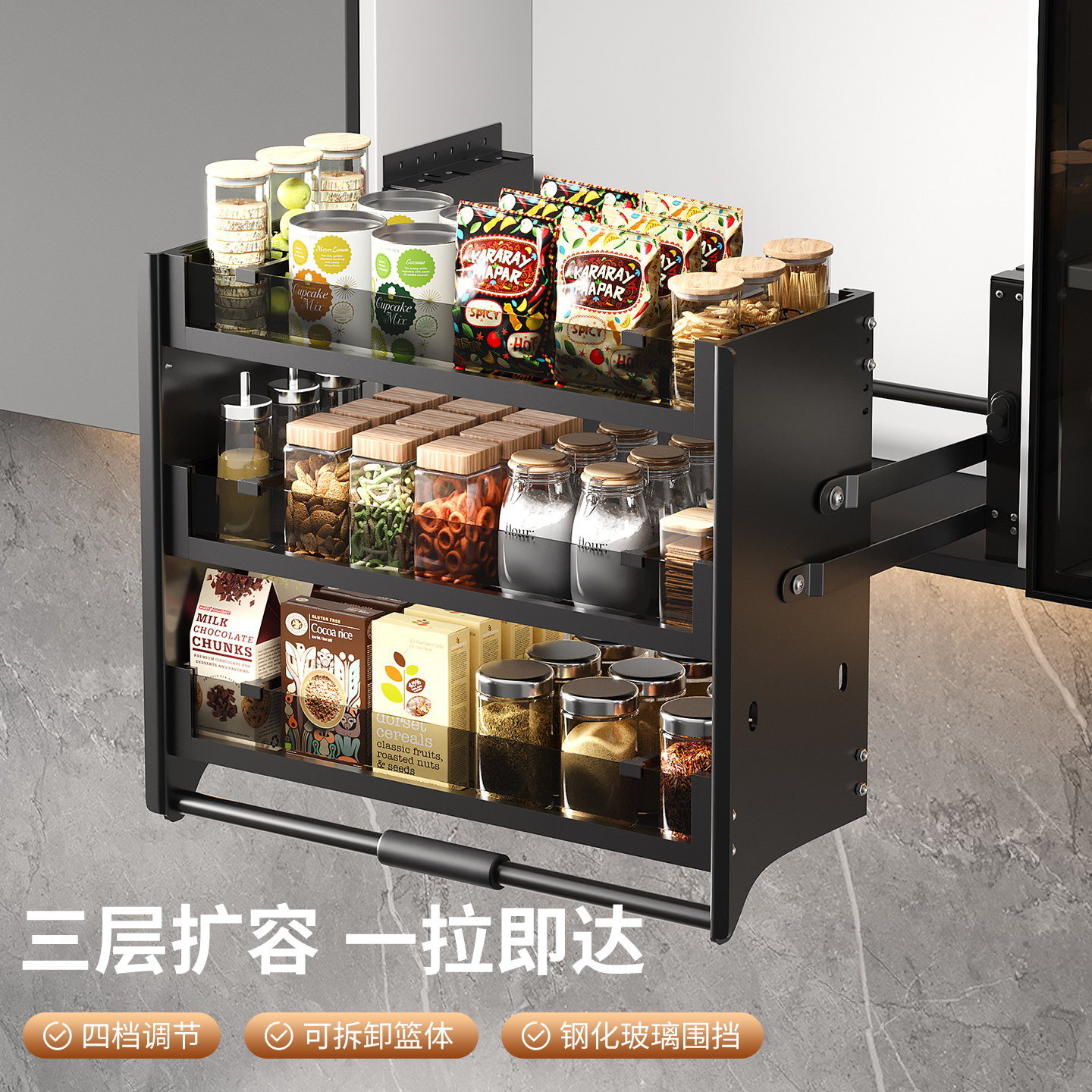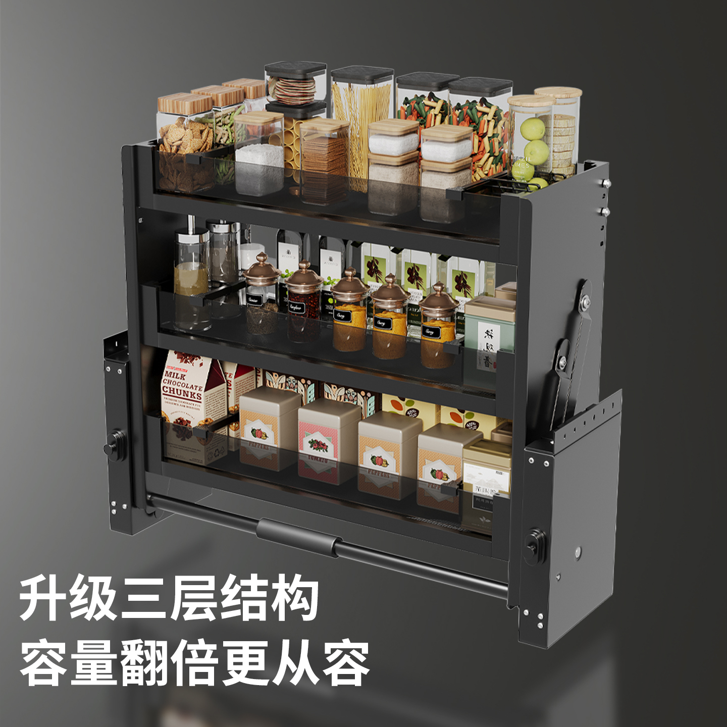 吊柜升降拉篮厨房橱柜三层上下拉式 调味料拉篮高柜收纳缓冲置物架