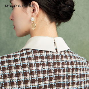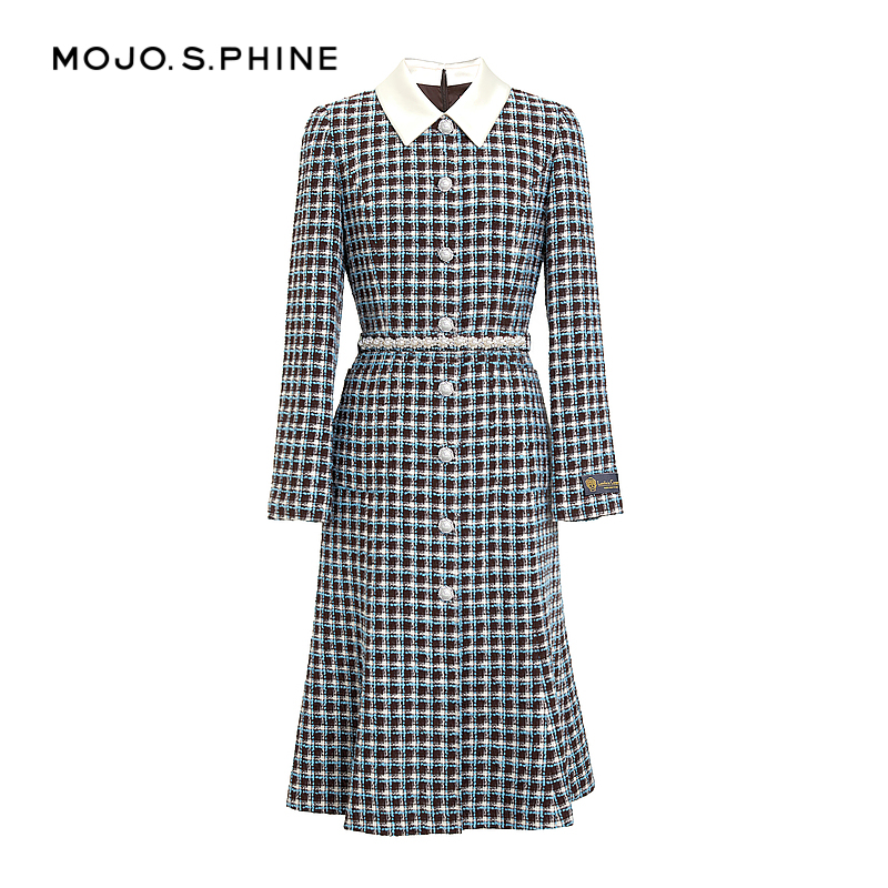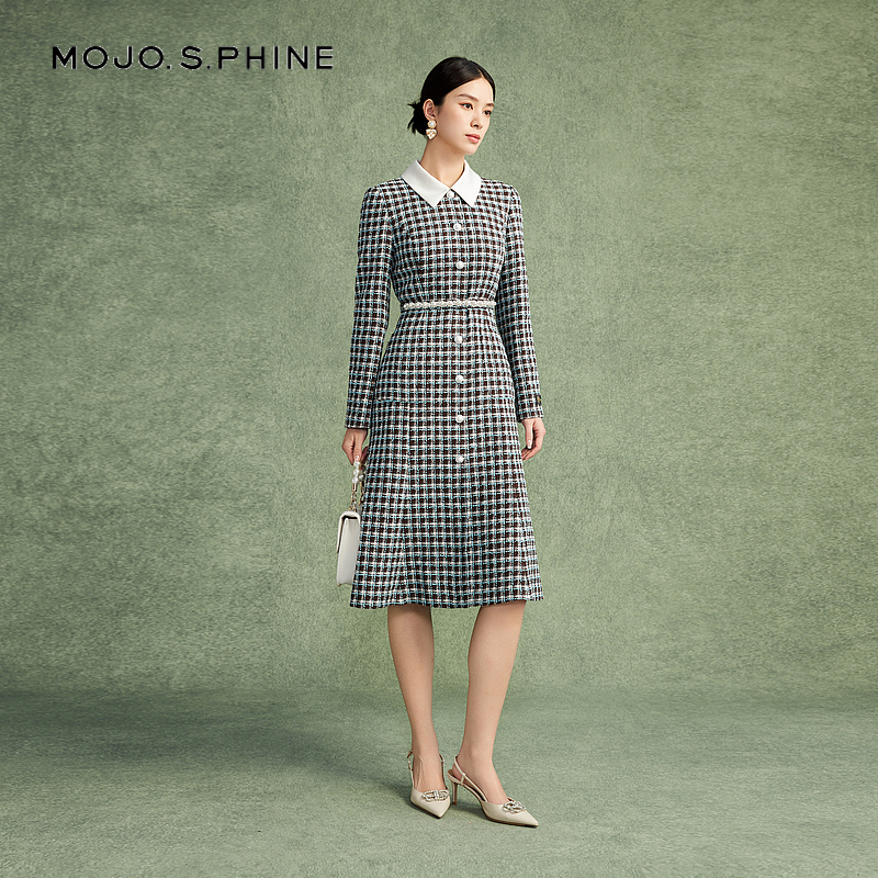 MOJO莫佐复古粗花呢鱼尾连衣裙2024年新款 中长裙 优雅气质收腰修身