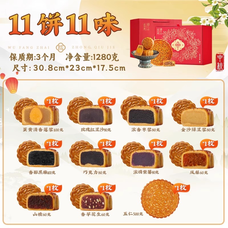 五芳斋月饼礼盒华韵尚雅蛋黄莲蓉枣蓉五仁豆沙广式 糕点中秋礼团购