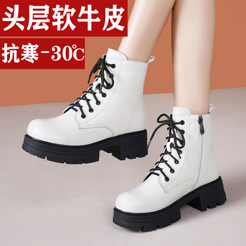 女士女靴女鞋 女款 新款 皮毛一体中筒靴冬季 白色靴子女 马丁靴女棉鞋
