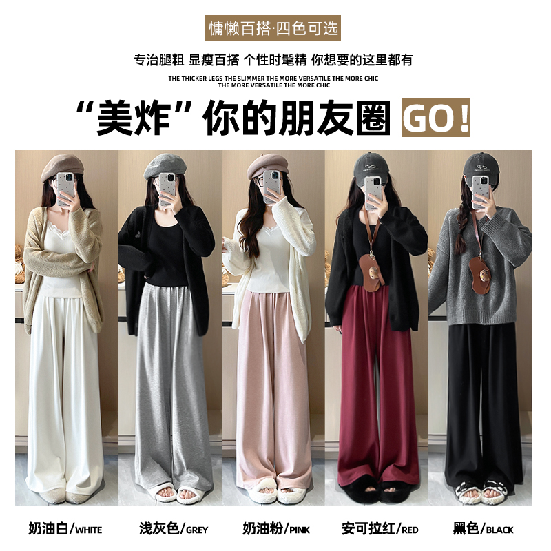 裤 酒红色山羊绒糯米裤 慵懒松弛垂感今年流行爆款 2025新款 子 女秋季