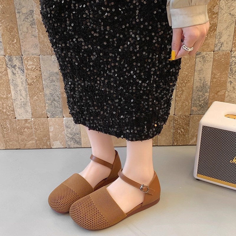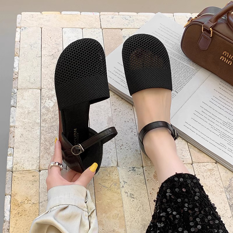 平底包头凉鞋 外穿配裙一字带镂空沙滩罗马鞋 女款 夏季 2025新款 法式