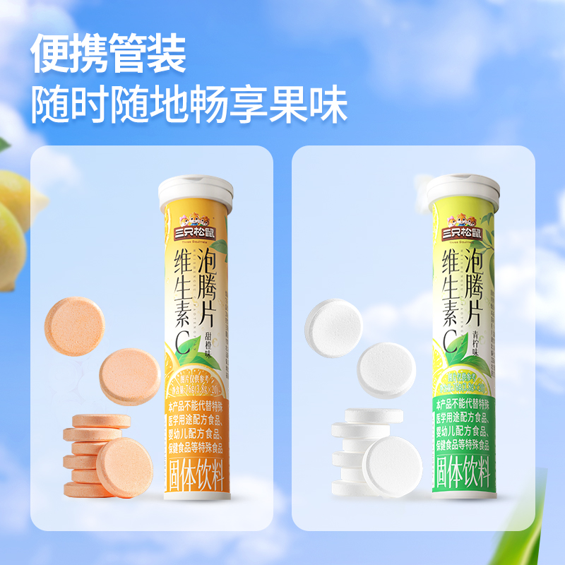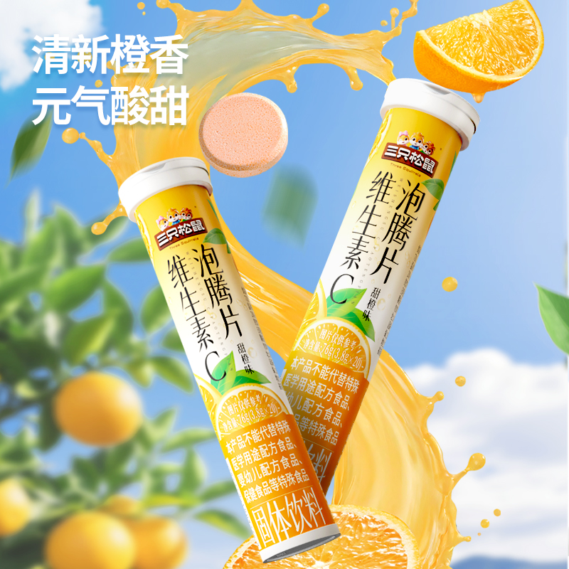 甜橙青柠水果汁味冲泡营养维他命高VC饮料 三只松鼠_维C泡腾片