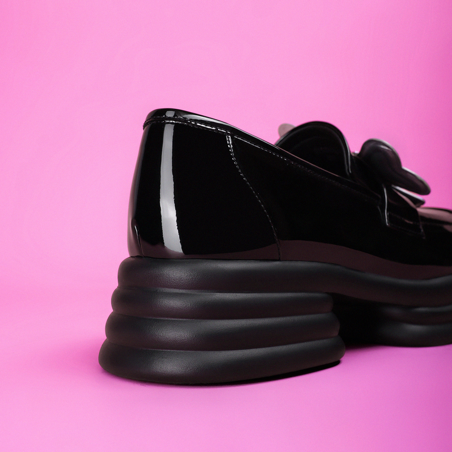 jk通勤百搭单鞋 女新款 黑色复古蝴蝶结小皮鞋 KISSKITTY方头乐福鞋