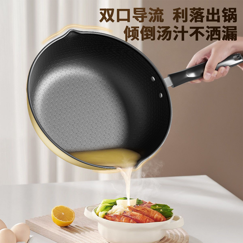 苏泊尔不粘锅家用炒锅304不锈钢蜂窝不粘炒菜锅电磁炉燃气灶通用