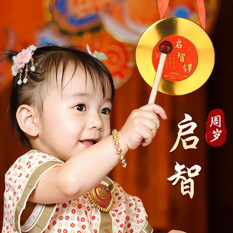 抓周道具用品套装 抓阄礼全套 宝宝一周岁生日礼物布置男孩女孩中式