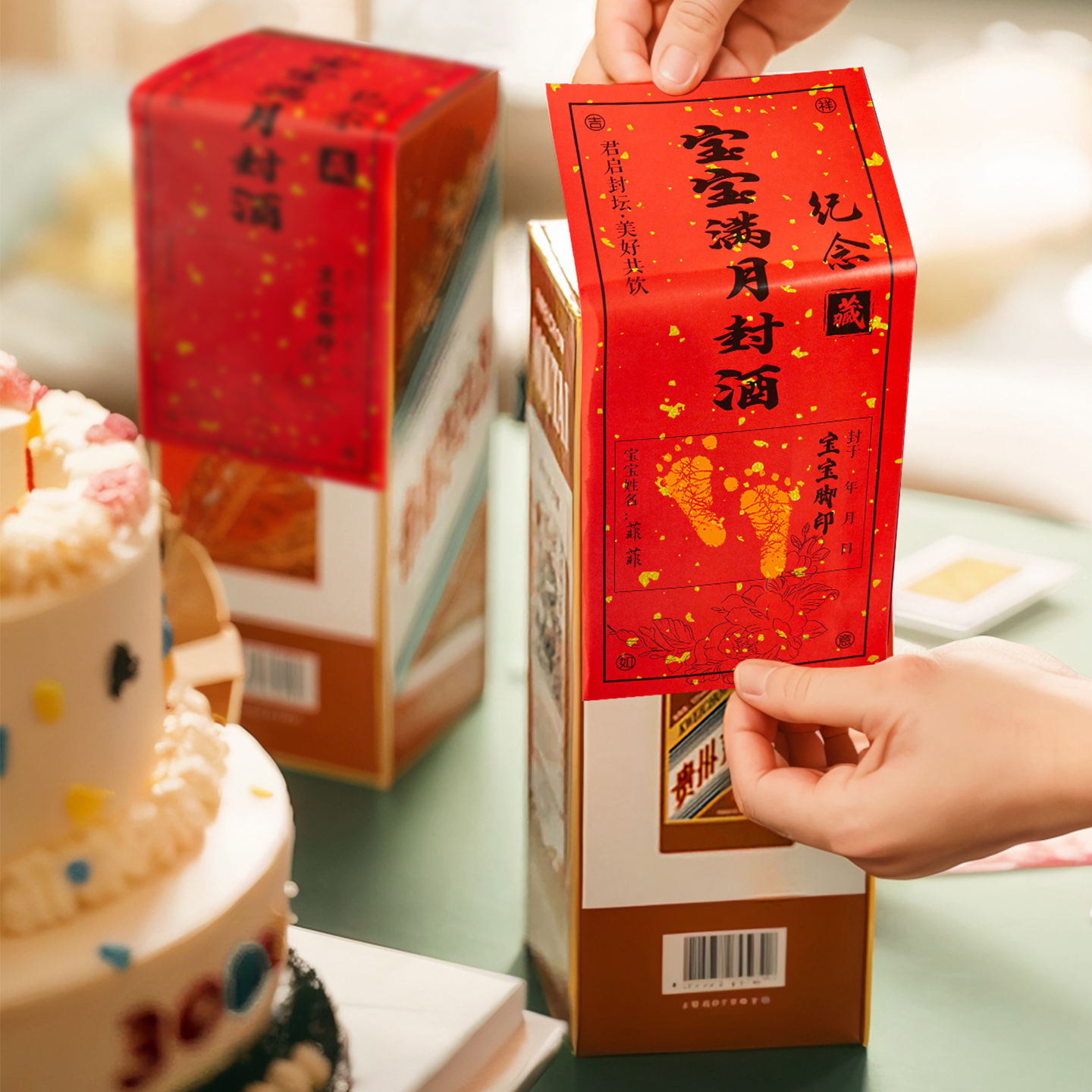 封酒贴纸周岁满月专用套装 百日百天封口贴抓周贴纸酒坛封帖足印印泥标签封条酒贴定制宝宝名字贴纸