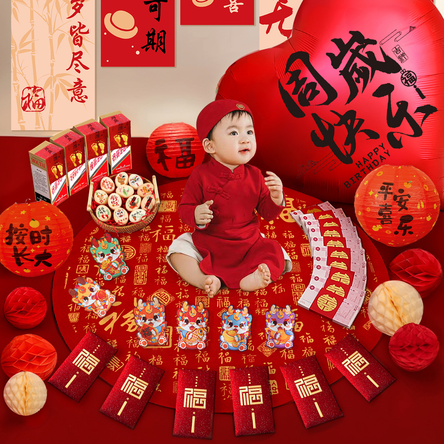 抓周道具用品一周岁礼套装 生日布置地毯摆件龙女宝宝男孩抓阄全套
