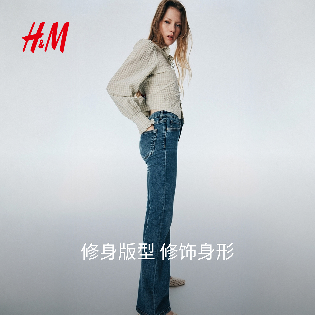 牛仔裤 5袋式 秋季 微弹高腰喇叭长裤 HM女装 新款 1109636 博主推荐