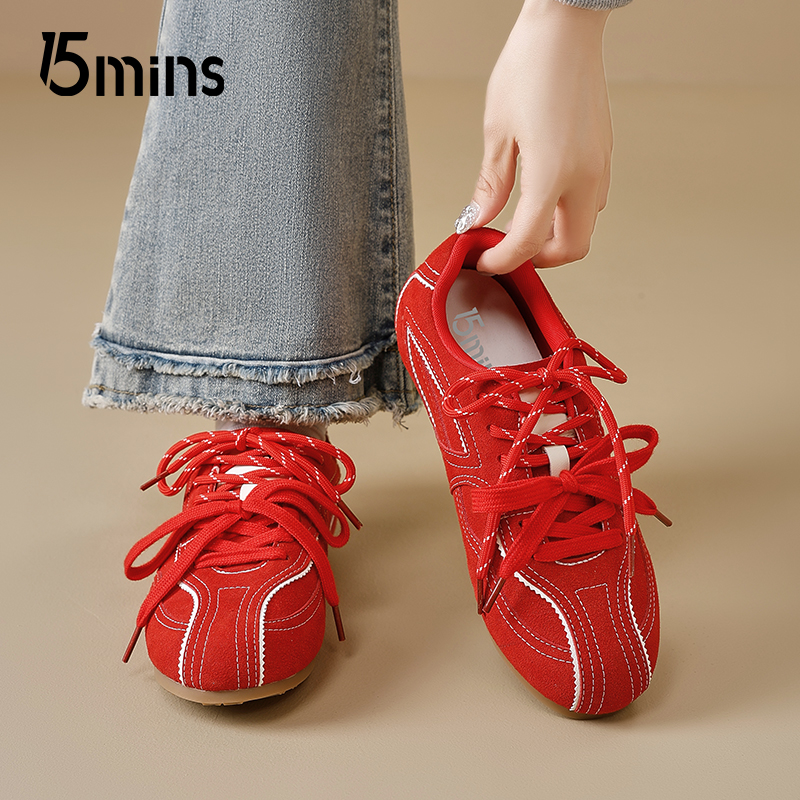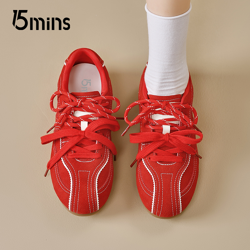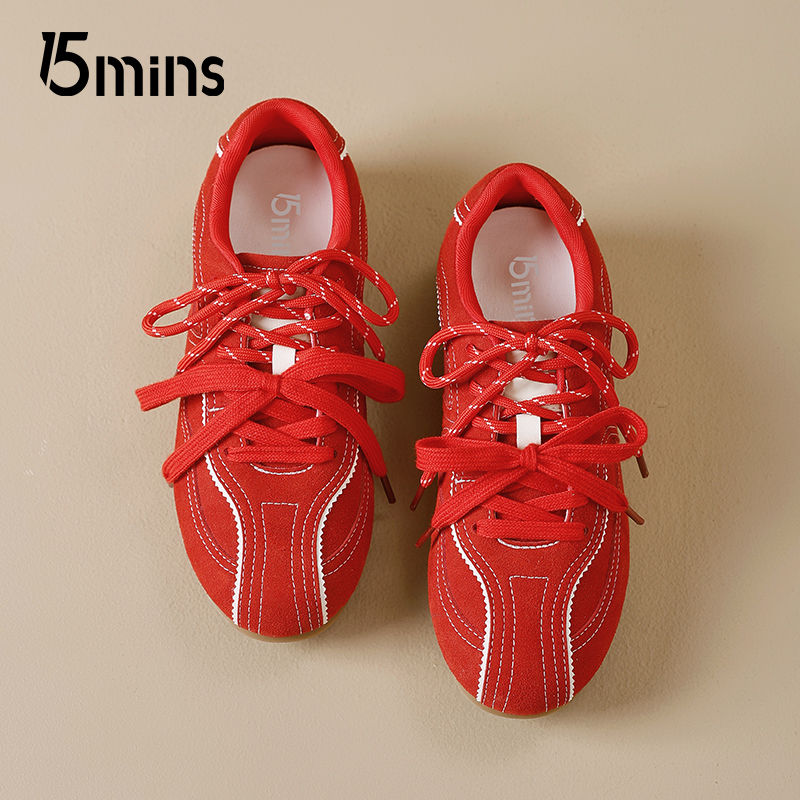 百搭芭蕾风休闲鞋 15mins巨好看德训鞋 透气爆款 夏季 女红色2025新款