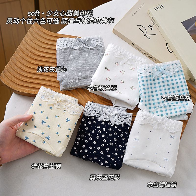 帕兰朵女士彩砂蕾丝蝴蝶结吸湿排汗透气纯棉抗菌加长裆少女内裤