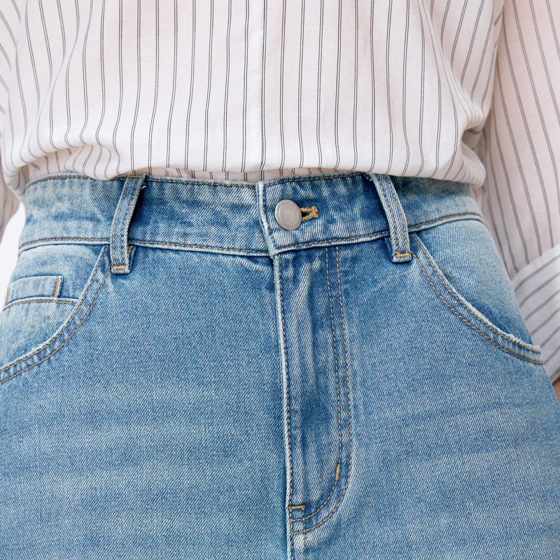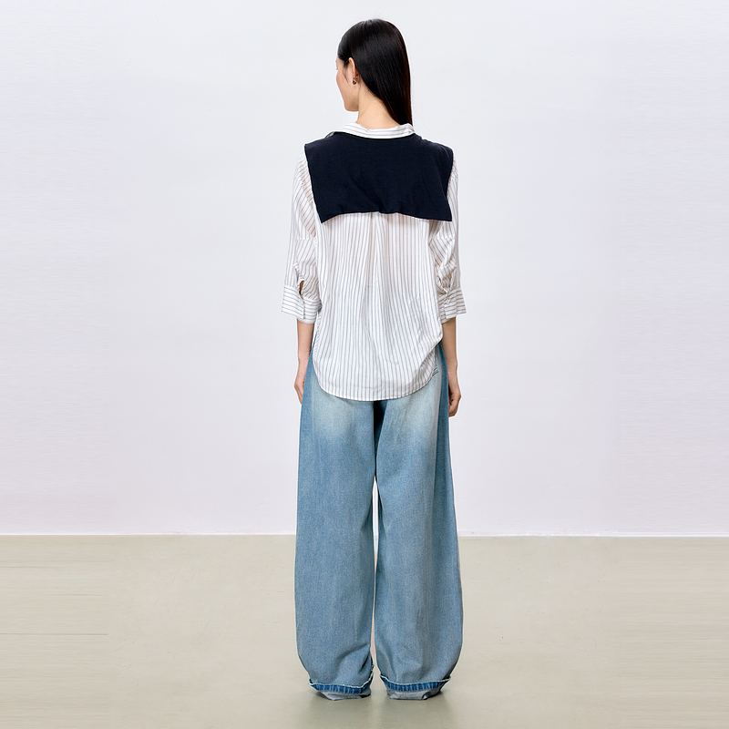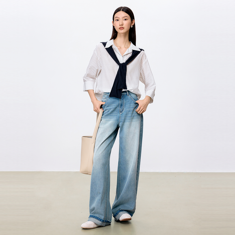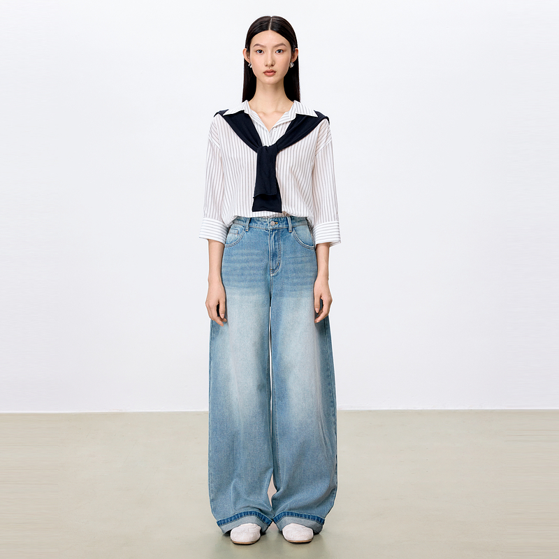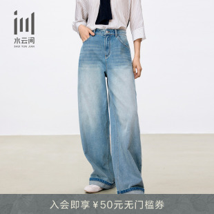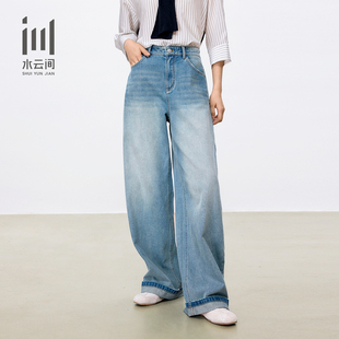 高腰时尚 新款 复古阔腿宽松浅色牛仔裤 2025夏季 长裤 水云间女装
