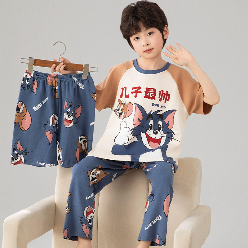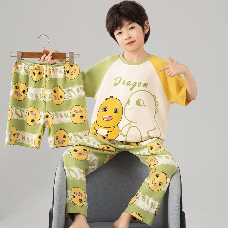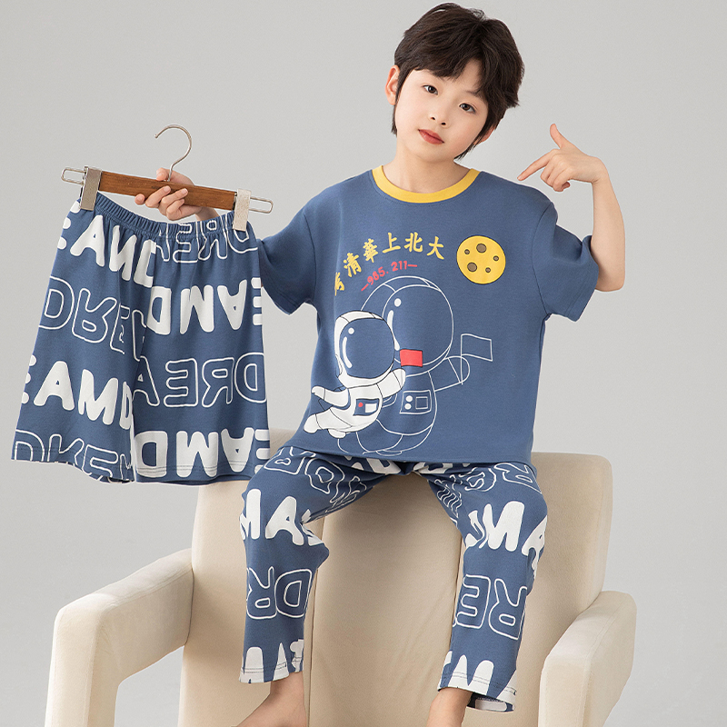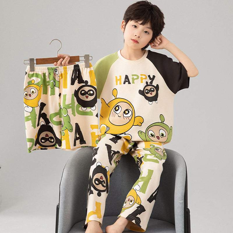 儿童春秋款 蛋仔薄款 2025新款 派对纯棉短袖 男孩三件套 睡衣男童夏季