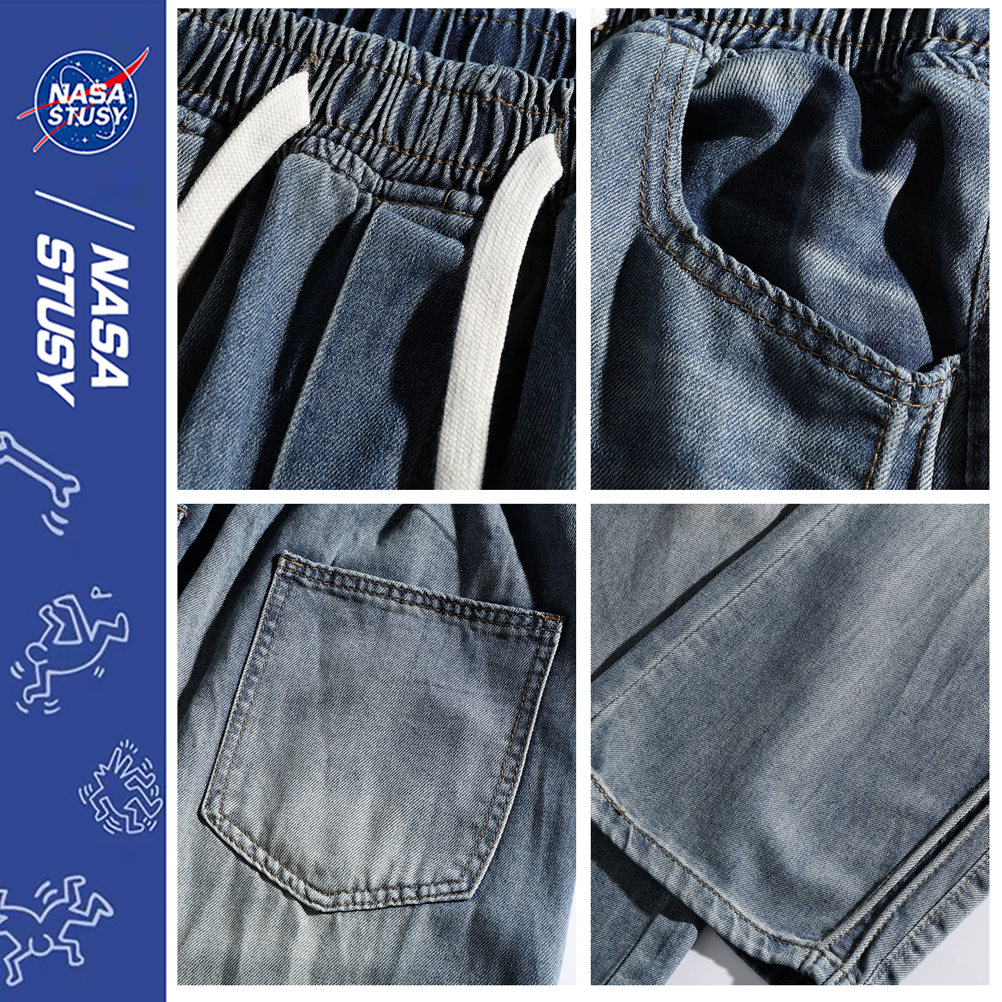 2025新款 秋季 美式 高街痞帅宽松大码 子 设计感牛仔裤 阔腿直筒裤 男款