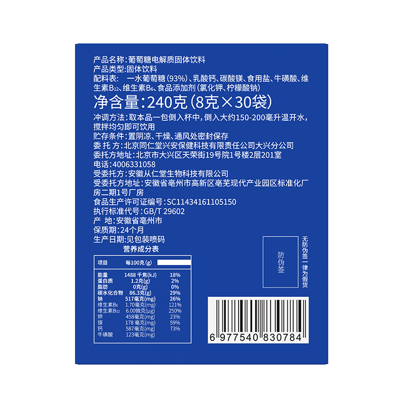 北京同仁堂葡萄糖电解质粉冲剂补水口服液低血糖补能量运动抗高反