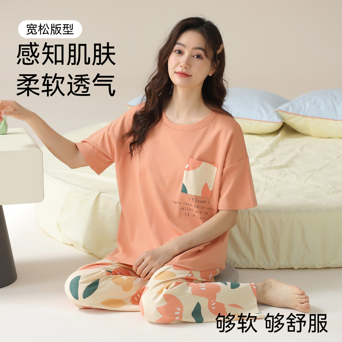 夏天夏款 冰丝女套装 莫代尔短袖 家居服薄款 长裤 家乐芬睡衣女士夏季