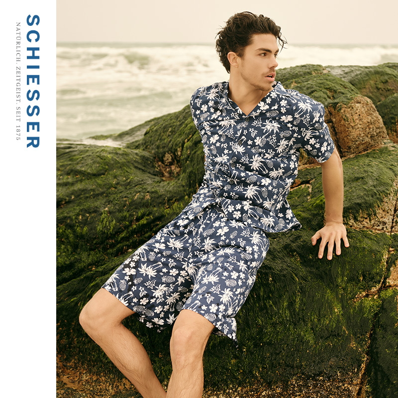 简约全棉高级感可外穿圆领家居服套装 春秋款 睡衣男士 猫人纯棉长袖