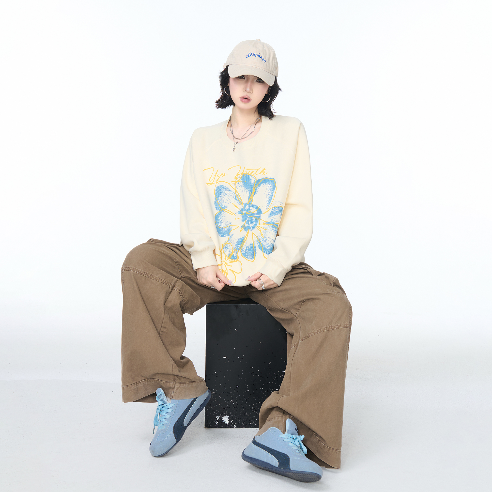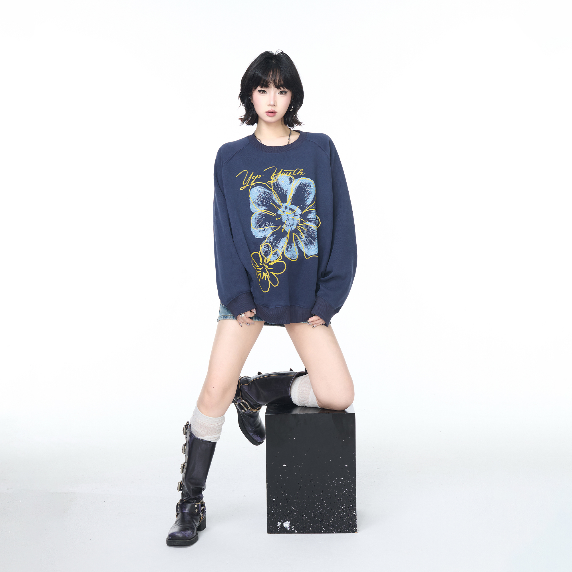 美式 休闲宽松oversize套头上衣 复古潮牌印花卫衣女2025春秋新款