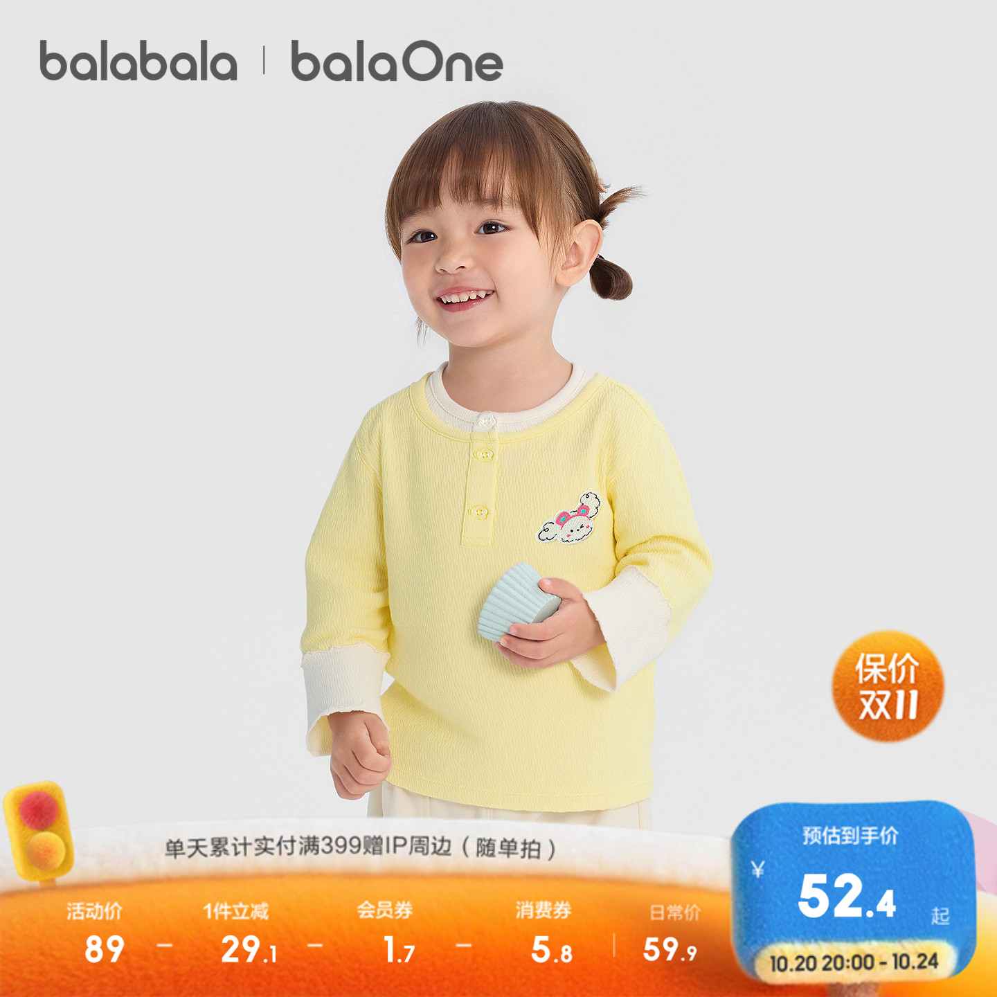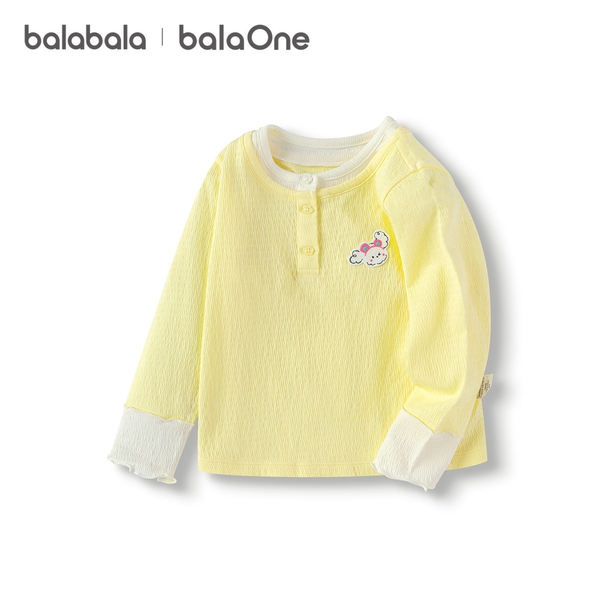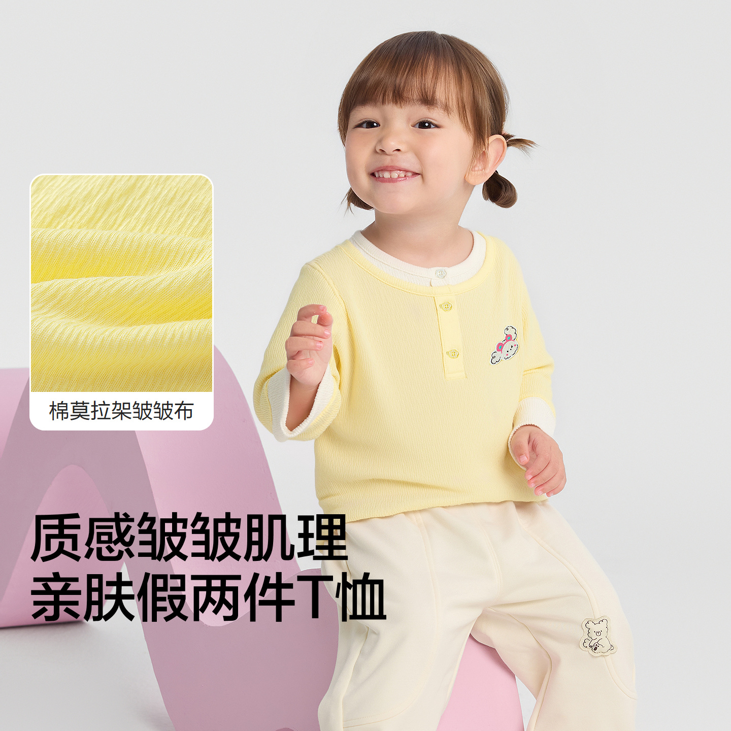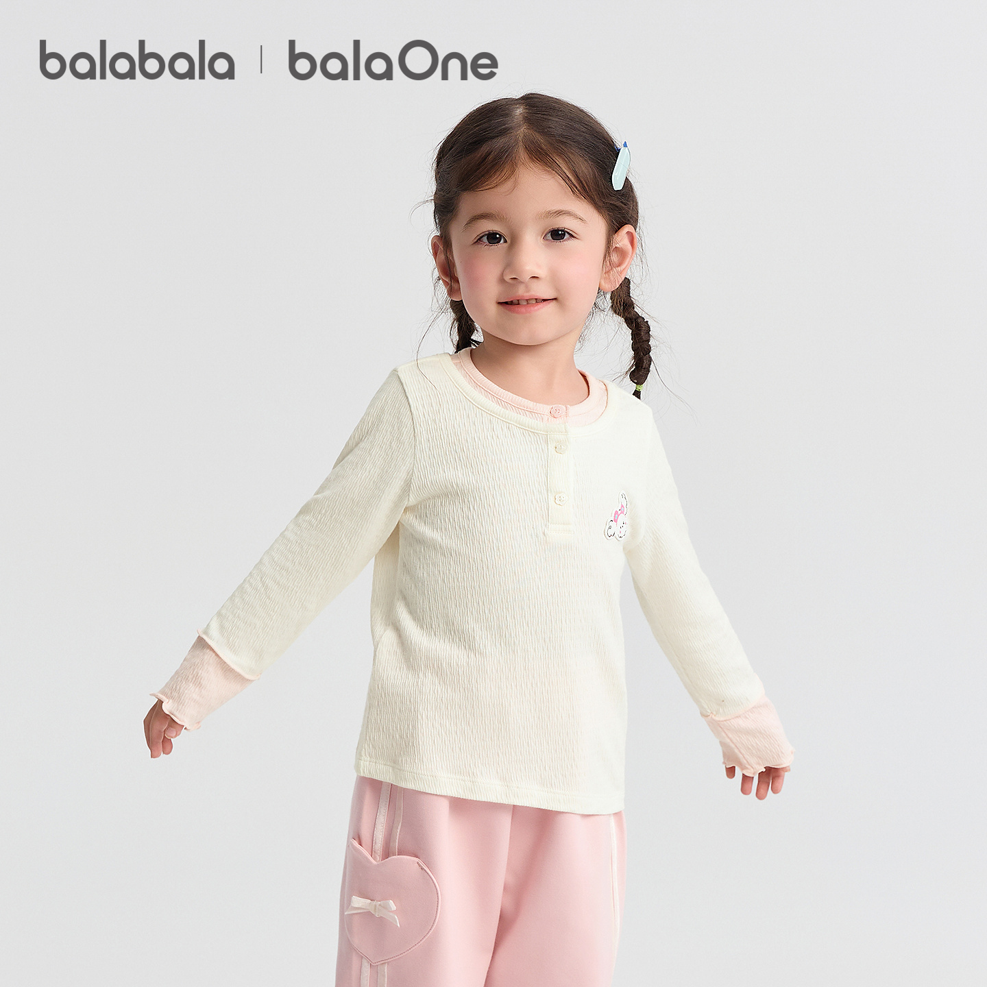 宝宝2025秋新款 t恤假两件打底衫 上衣 女童长袖 巴拉巴拉balaOne童装