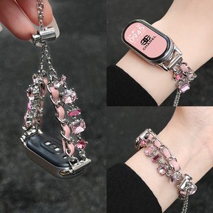 5手链八九代4手腕带夏天新款 智能运动手表链7高级感女生6创意陶瓷款 9手表带链彩钻金属8nfc版 适用小米手环10