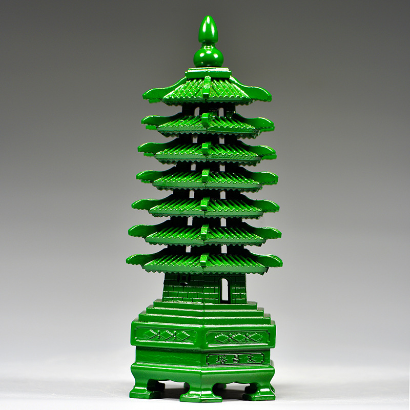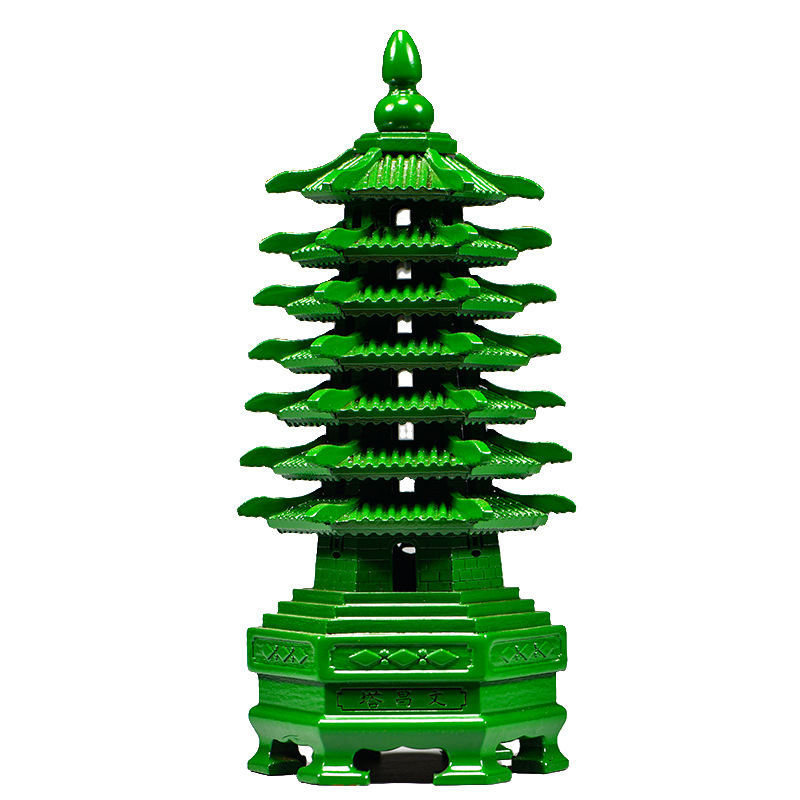 绿色桃木雕刻七层文昌塔摆件十三层九层文昌塔家居风水装 饰工艺品