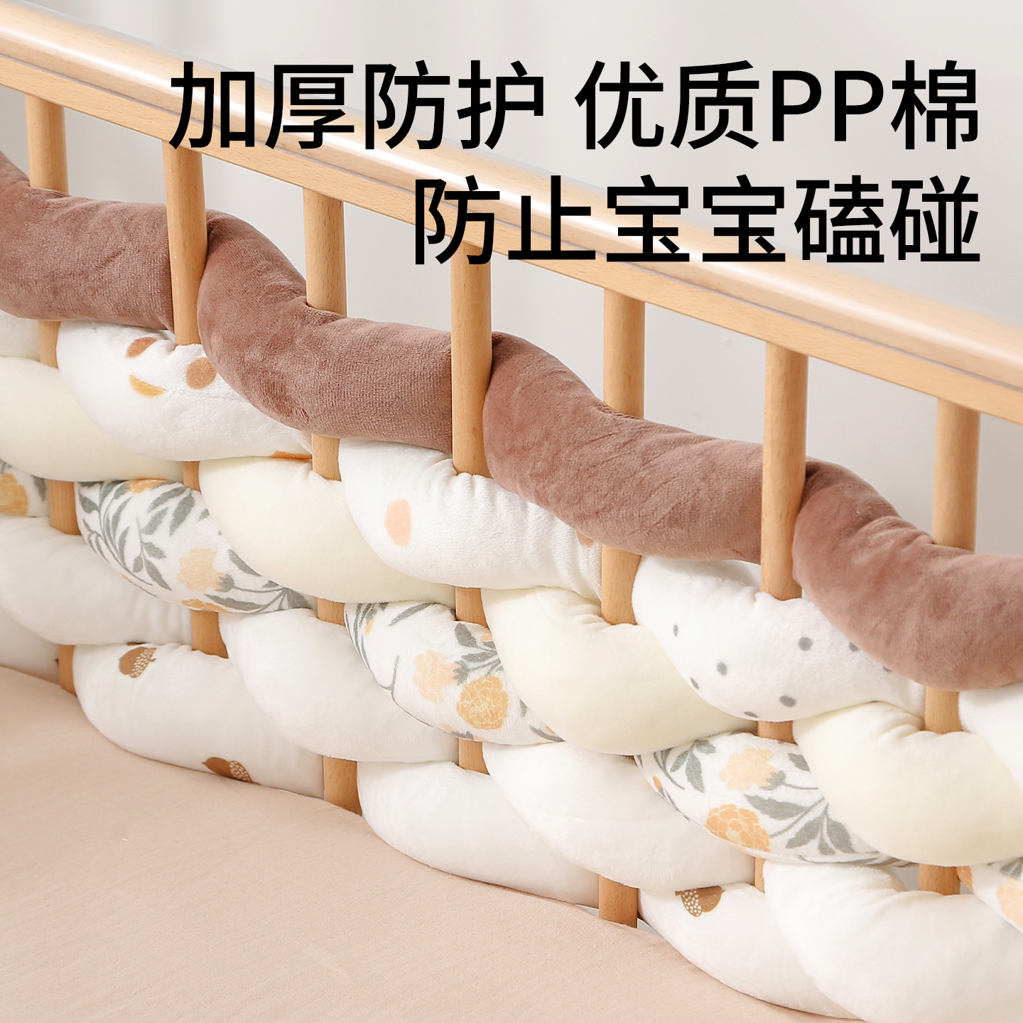 婴儿麻花床围防撞防摔新生儿防护围栏软包床边缓冲床靠挡条防掉床