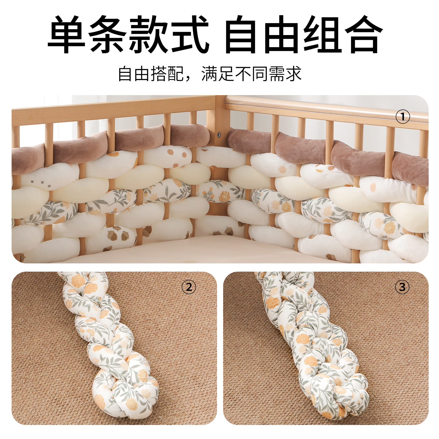 婴儿床床围栏软包麻花床围儿童拼接床护边装 饰缓冲床靠围挡防撞条