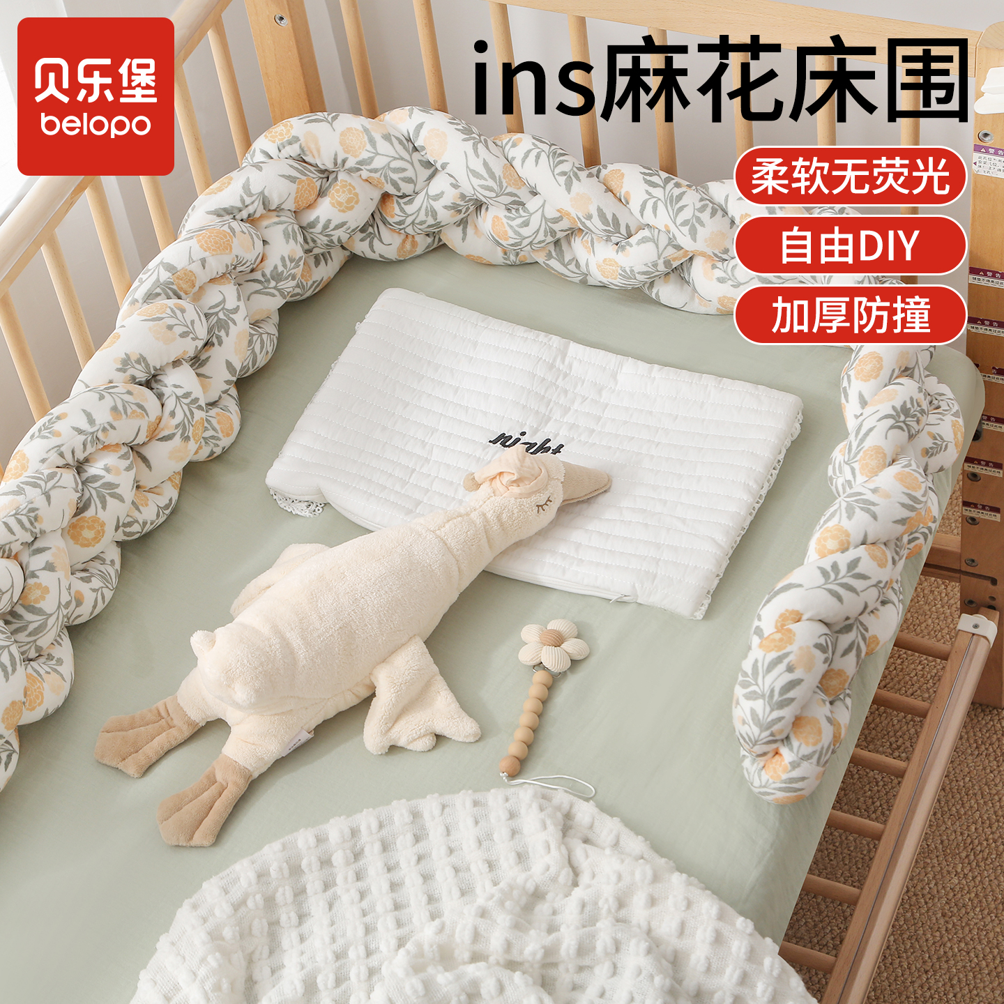 ins麻花床围婴儿床防撞围栏软包儿童宝宝拼接床床靠围挡装 饰床品