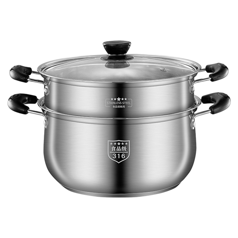 316不锈钢汤锅家用无涂层泡面锅双耳小锅蒸锅专用燃气电磁炉煮锅