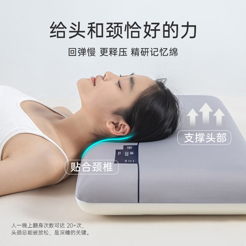 水星家纺记忆棉枕头芯慢回弹深睡枕A类抑菌成人学生宿舍呵护颈椎