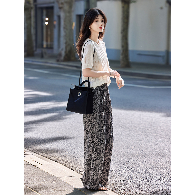 女士2025年夏日新品 时尚 套装 夏季 简约两件套 气质休闲百搭T恤长裤