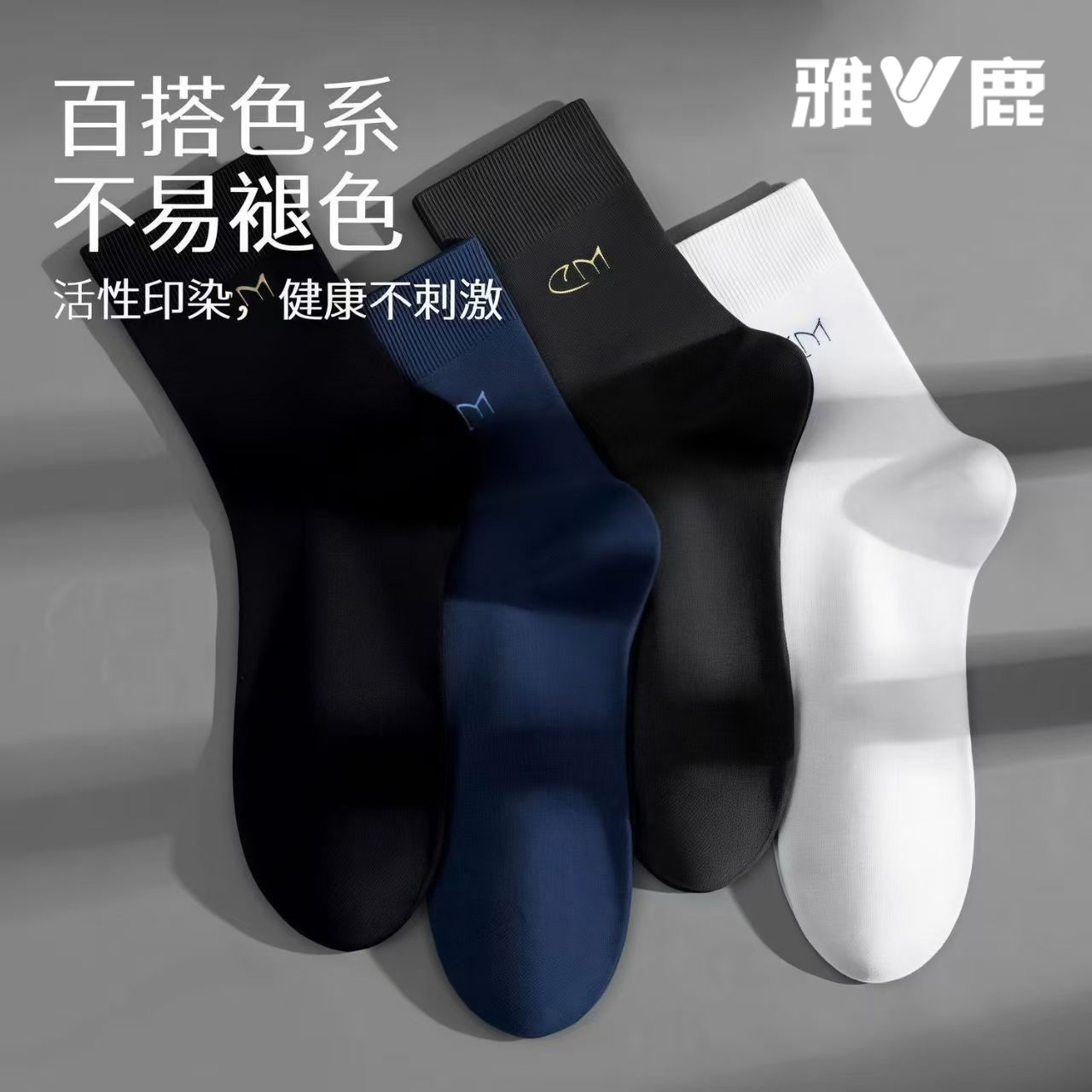 雅鹿袜子男士 中筒袜防臭袜透气吸汗抗菌袜耐磨抗起球运动袜 秋冬季
