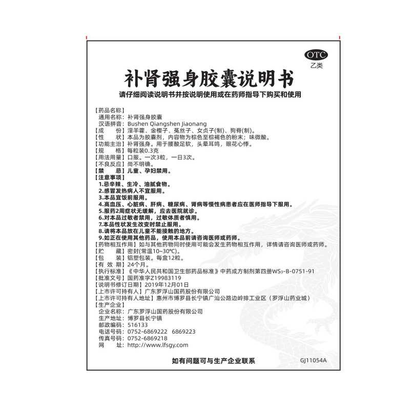 罗浮山补肾强身胶囊12粒补肾强身用于腰酸足软头晕耳鸣等